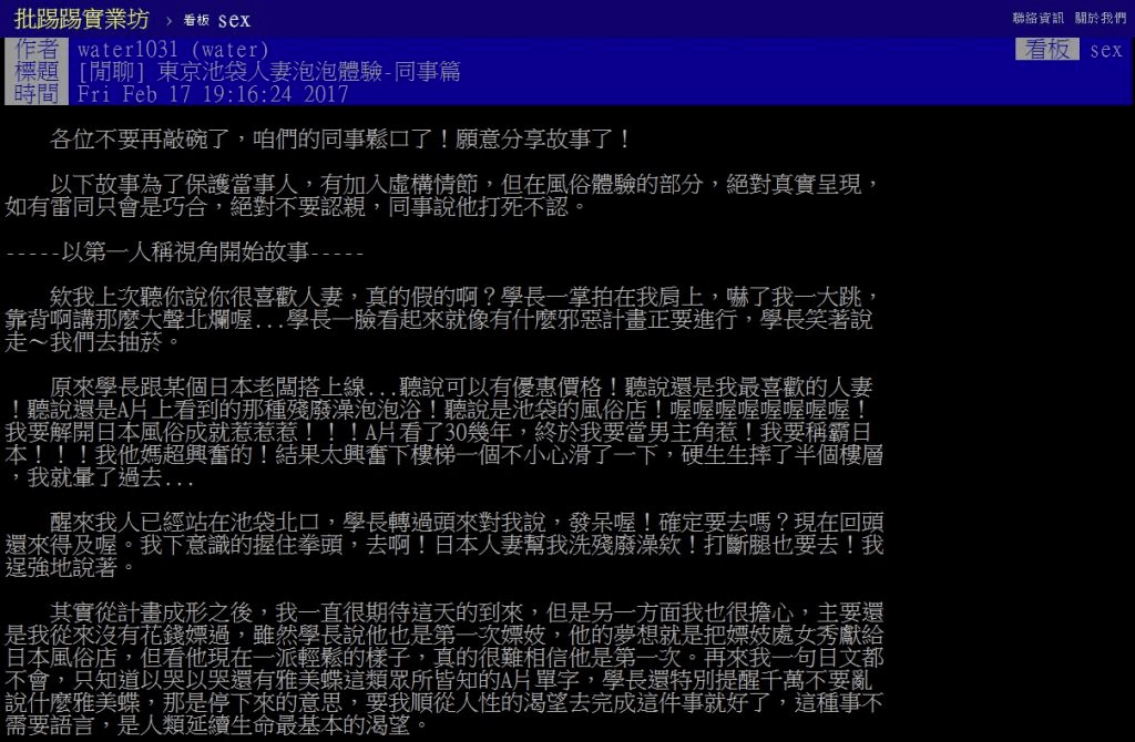 先日ご紹介した池袋の泡風呂店の後編を覚えていますか?その中の一人が「ひとづまヘブンクラブ」というお店について言及していました。今回、編集者がPTTで気泡風呂の体験談を冗談めかして紹介している記事を見つけたのですが、それはこのお店のことでした。